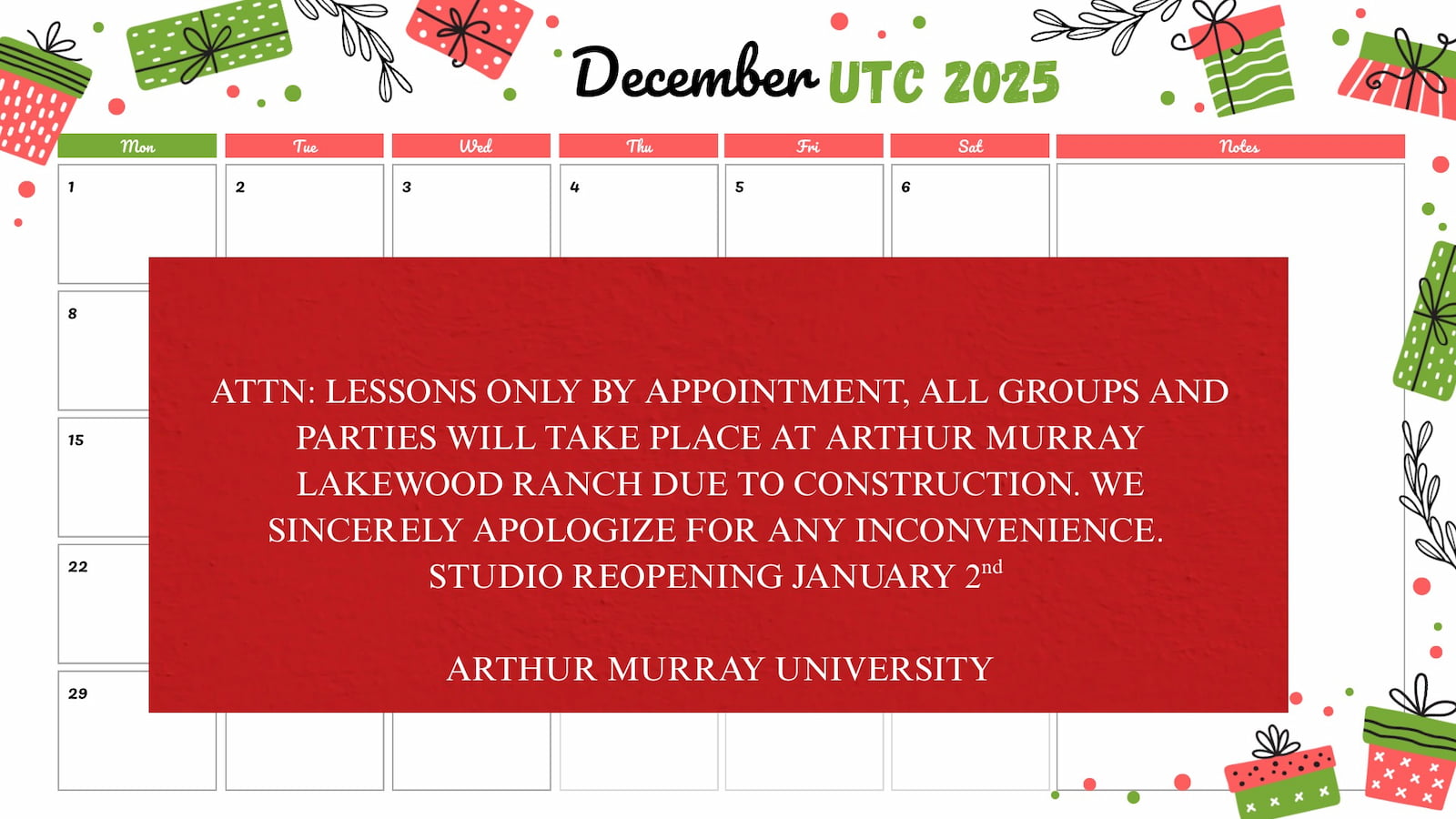 *Group Class Calendar for current students only